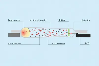The NDIR technology allows for the precise detection of this gas in the environment through the emission of an infrared wavelength the size of the CO2 molecule.